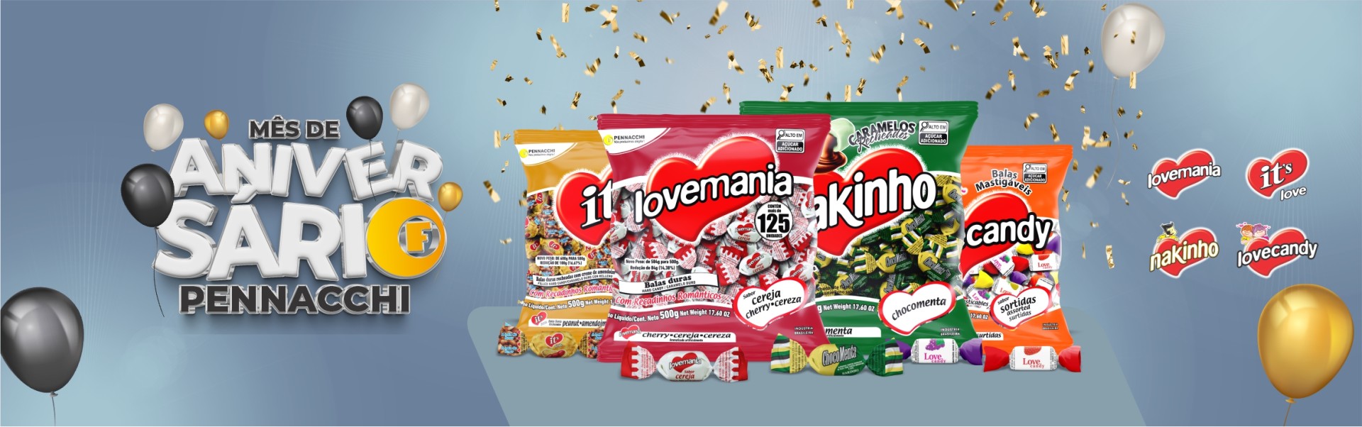 Deliciosas balas e caramelos de gramaturas e sabores diversos. Quatro marcas exclusivas para atender você. Nós produzimos e distribuímos doces momentos de alegria. A Pennacchi Indústria, uma das empresas do grupo Pennacchi, nasceu em meados dos anos de 1970 quando após a família se firmar n...