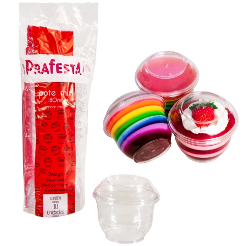 Pote Redondo 180ml Ps Com Tampa Prafesta Mix 10un